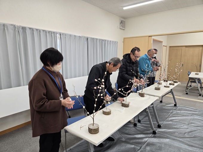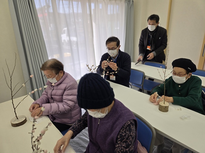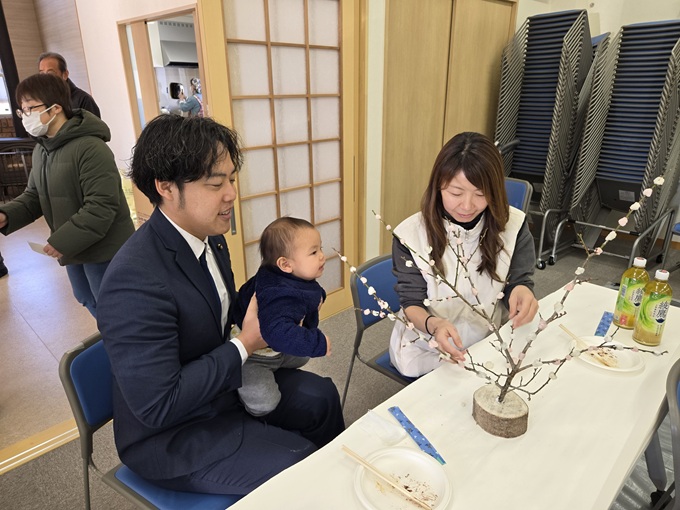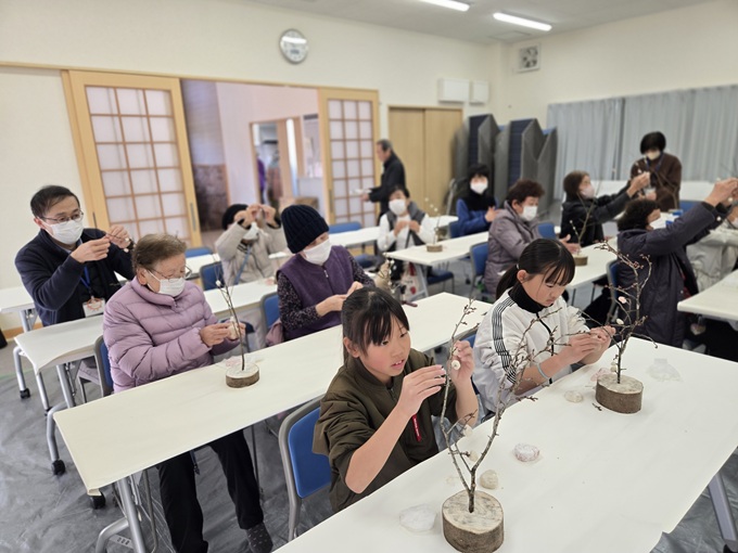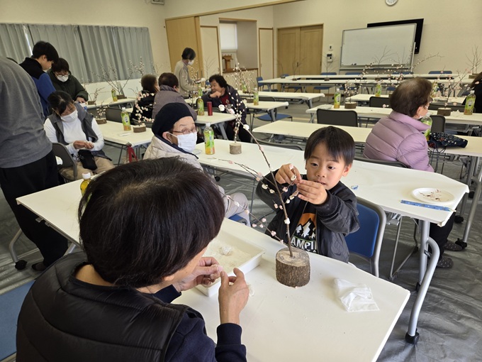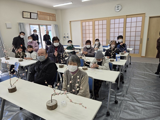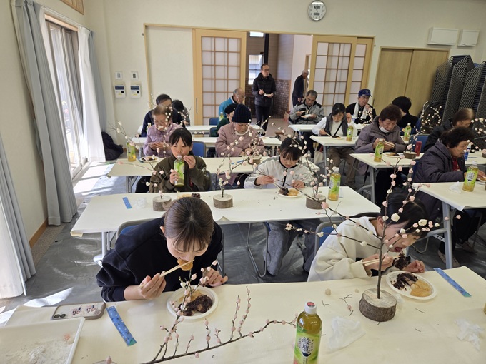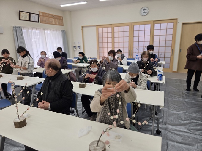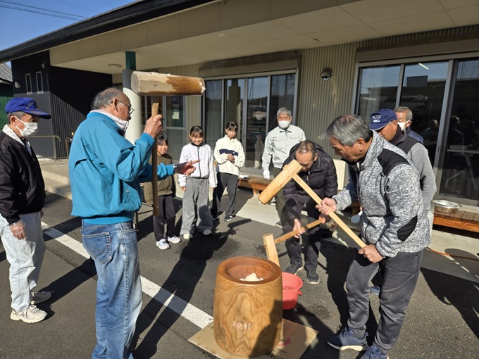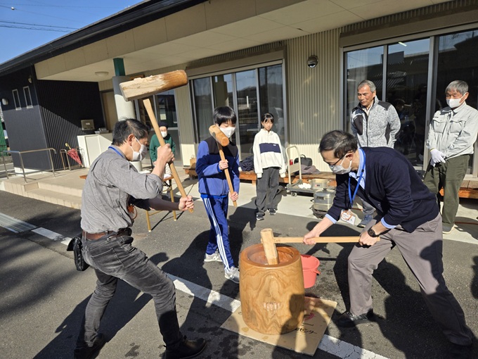 小学校や地域のみなさんの協力で、餅つきと花もちづくりを行いました。