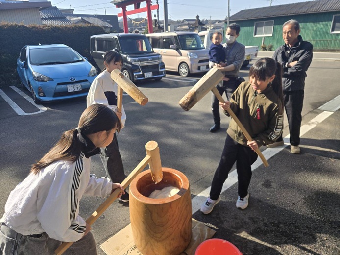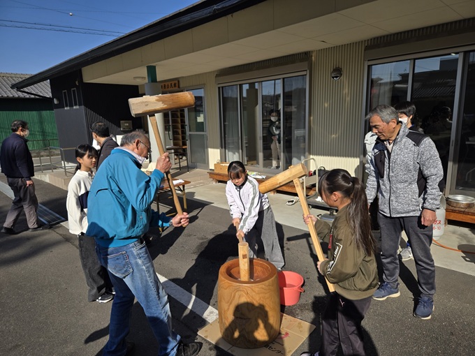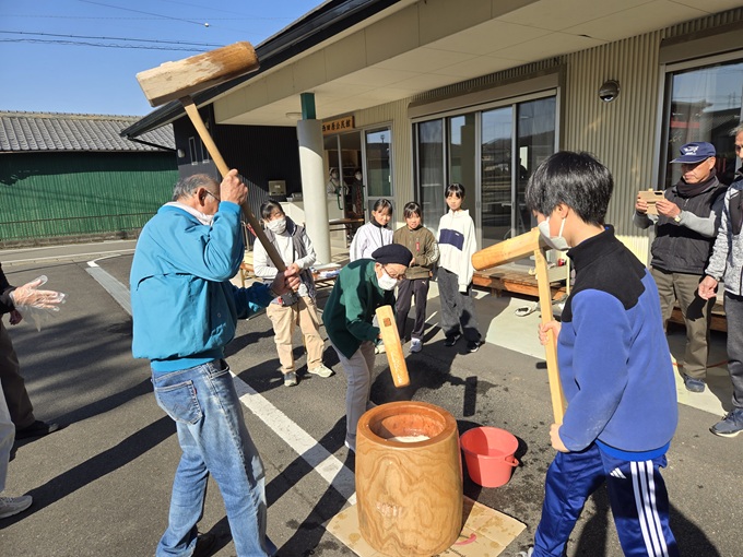 2.餅つき(杵と臼は田原保育園からお借りしました)