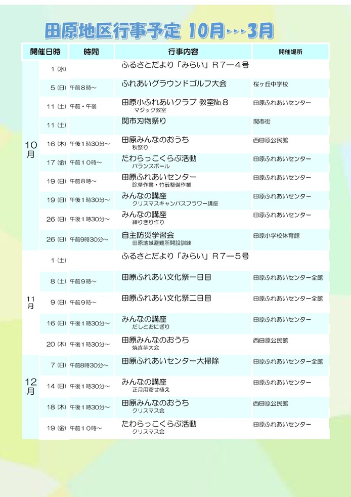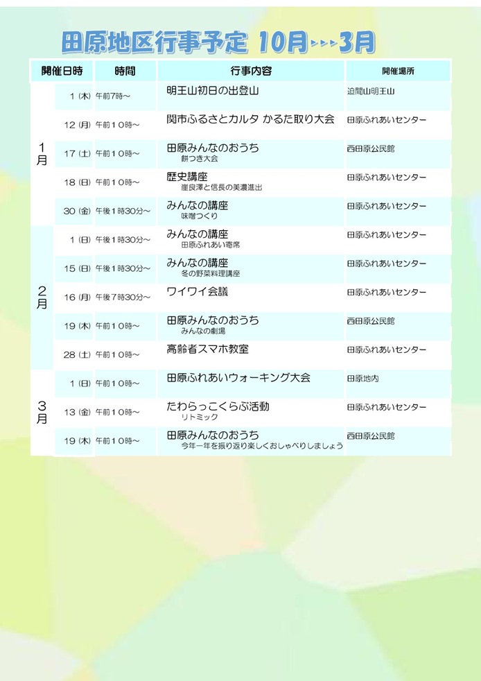 令和7年10月~12月、令和8年1月~3月 田原地域行事予定
